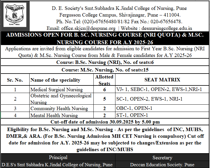 For more Details contact :Office : 020-67656470 020-67656480, 020-67656481, 020-67656482